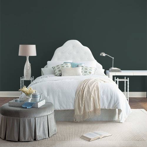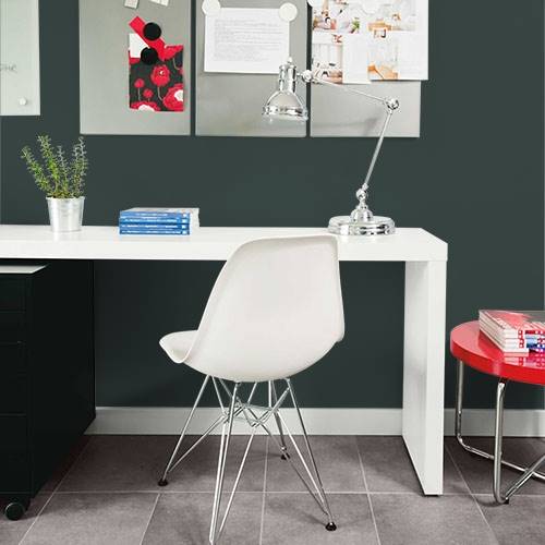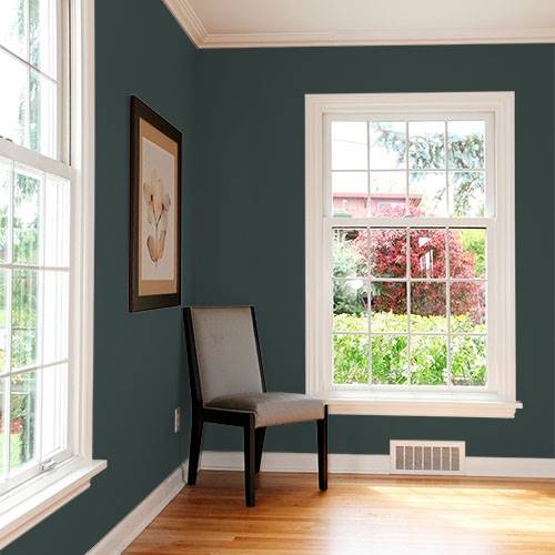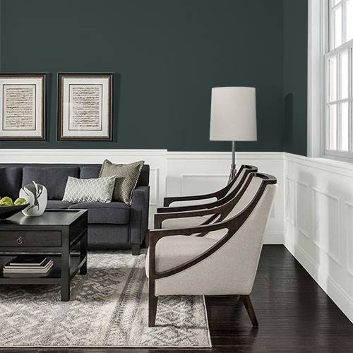 For a natural woods inspired dining room, select this green for added depth. Surrounding walls can be rich camel tones to add lightness to this area.