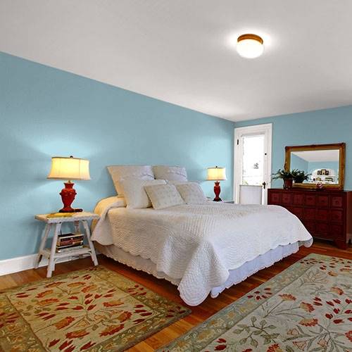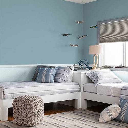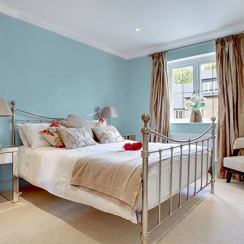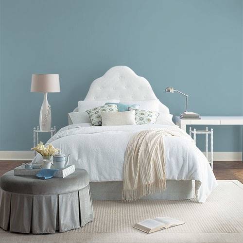 For a dreamy bedroom, add this sophisticated teal to a bedroom environment. Add shades of coral for a pop of color or keep it all in teal shades.
