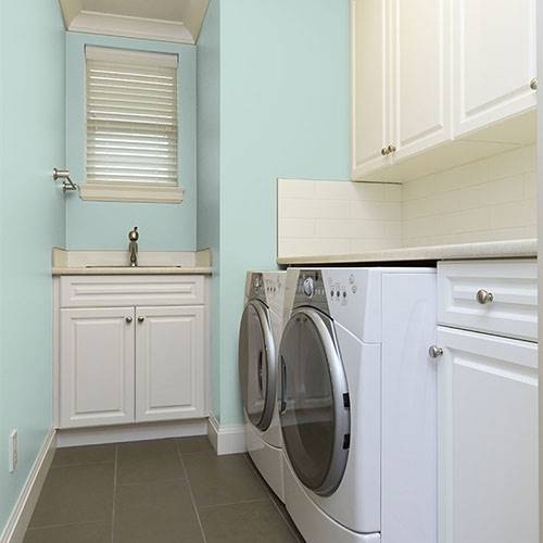 For a peaceful serene bathroom, this green emanates this appearance. Clear glass accessories and touches of white are soothing for this area.
