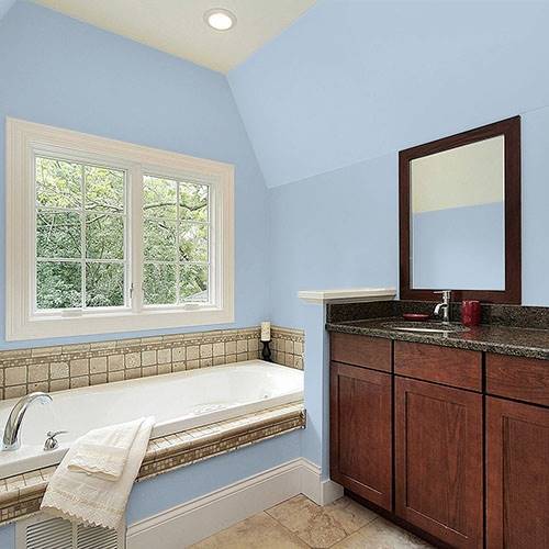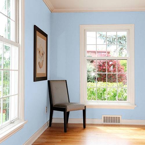 Bask in a calming atmosphere and add this gracious blue in a bedroom. Add chocolate browns for deep meditative accents.