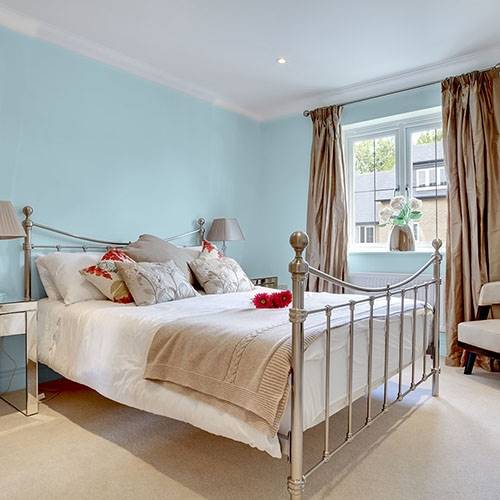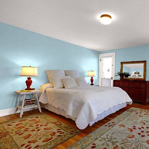 For a comfortable and soothing bedroom use this hazy soft blue. Add pops of soft rose and corals for a Floridian flavor.