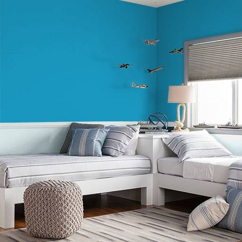 This sporty blue is a wonderful choice for a boy's room. The trim can be white or tinted blue essence.