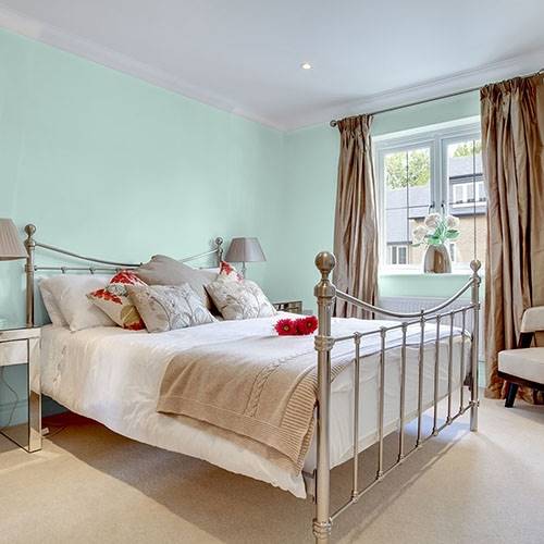 A welcoming and friendly green is perfect for a front entry. Trim in white and accessorize in lighter wood tones.