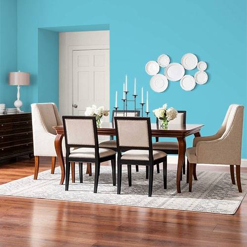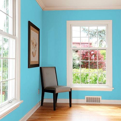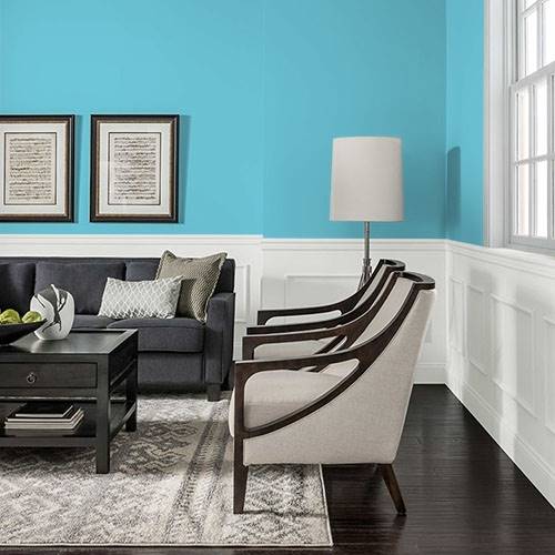 This coastal sea color is perfect for a living room. Trim in whites and neutral sands for this beach themed environment.