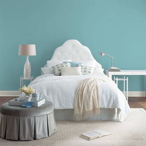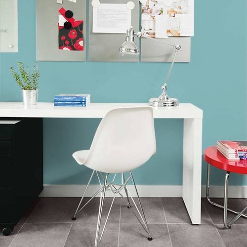 This soft midtoned teal is perfect for a lovely dining room. Pair with off white and contemporary furnishing of metals and glass finishes.