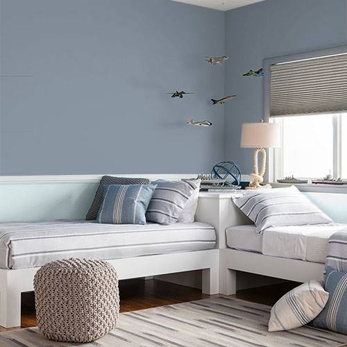 This lovely blue gray is an elegant bedroom selection. Also use lighter grays to add a breath of freshness into this area.
