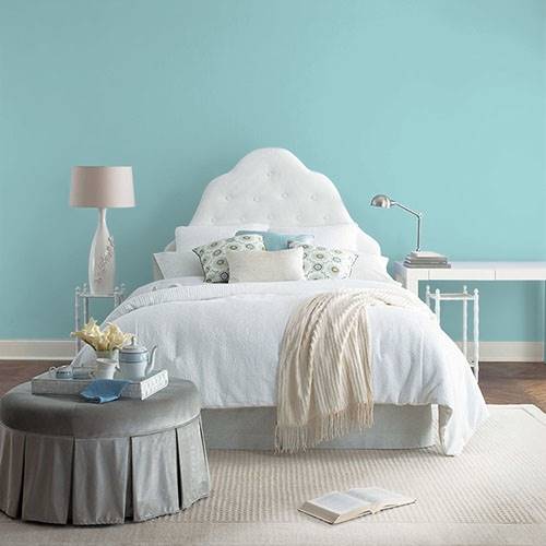 For a balmy Floridian style, use this perfect blue green for your living room. Pair with tropical floral fabrics on accent chairs.