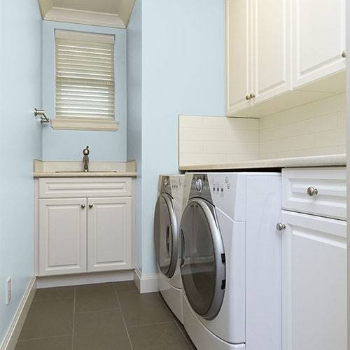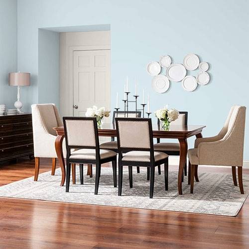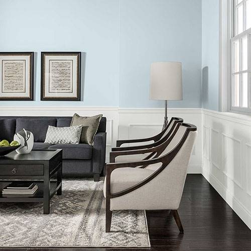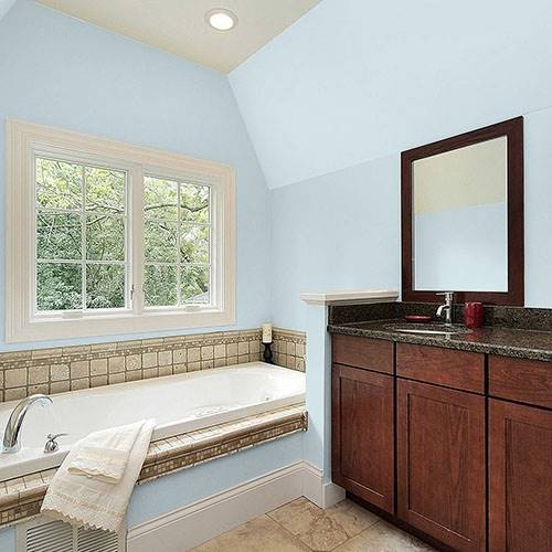 This luscious blue is perfect for a bedroom. Pops of light corals and pinks add an exhilarating tropic theme.