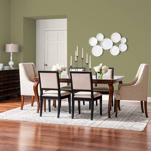 This is a perfect elegant green for a transitional kitchen. Add a copper tin ceiling to enhance the color in this area.