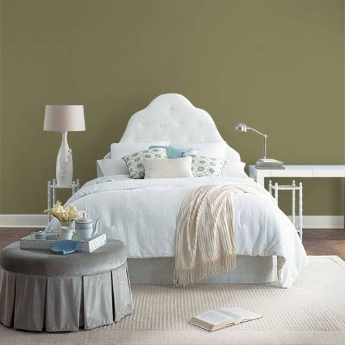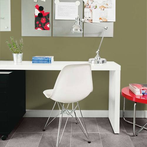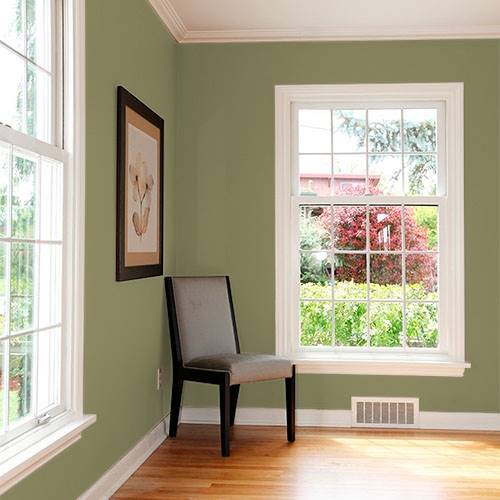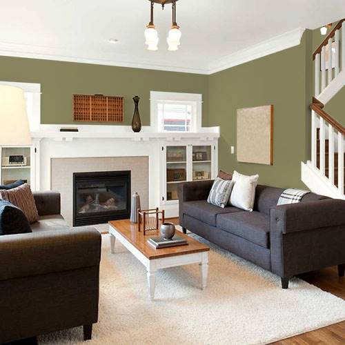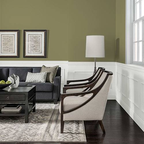 This enriching deep olive creates drama in a dining room. Add pops of corals and pink tones as accents in this area.
