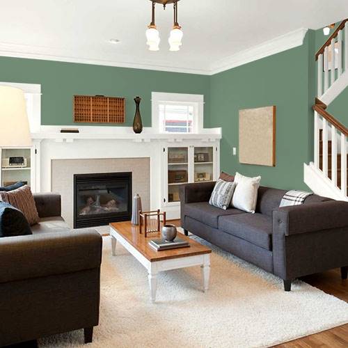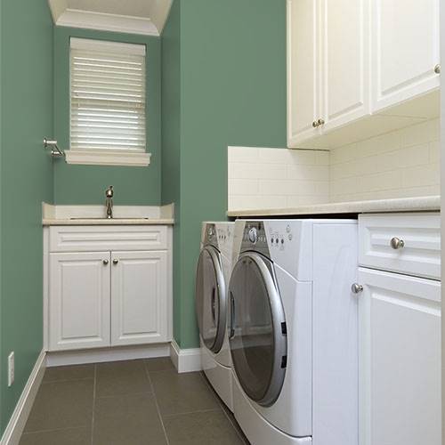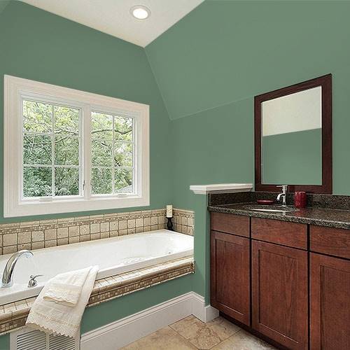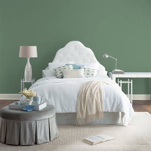 This subdued grassy green is best for an accent wall. Pair with lighter minty greens for surrounding walls.
