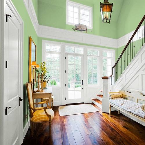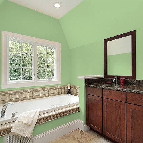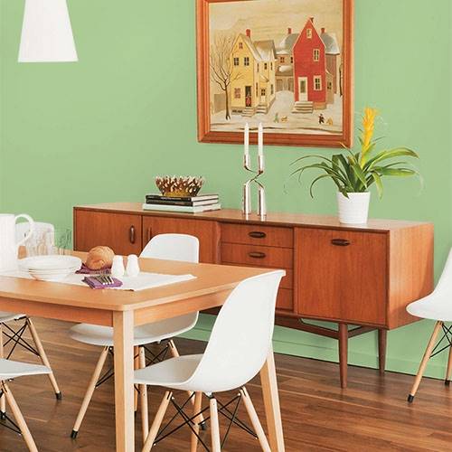 For an upbeat girl's room select this lively green. Pair with charcoal grays and pops of pinks for this fashionable space.