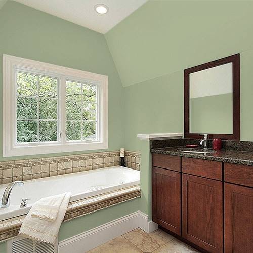 This fresh spring green creates an energetic atmosphere for a kitchen. Liven the space by adding white accents in cabinetry.