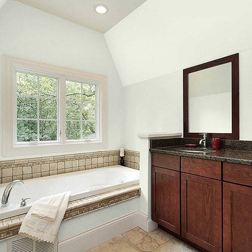 This fizzy soft green creates an inviting space for a living space. Contrast remaining walls with tones of olives and plums.
