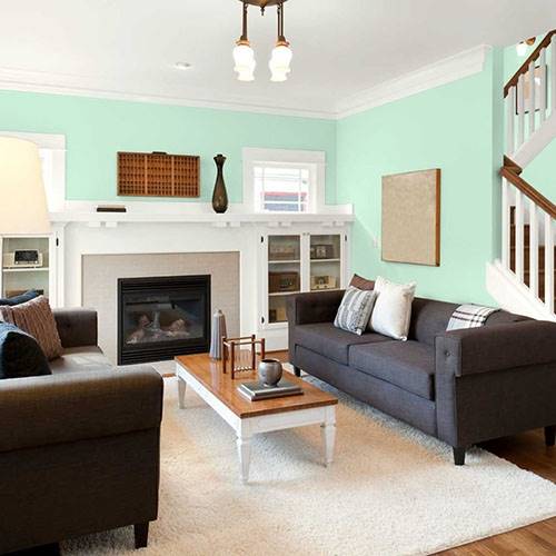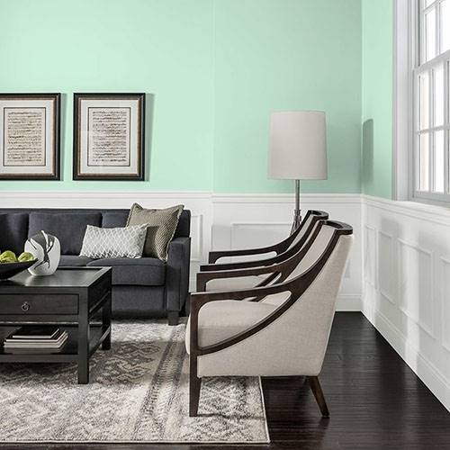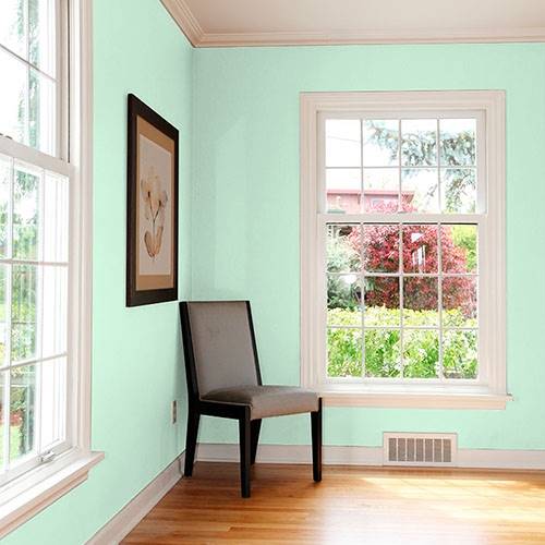 For a clean and crisp room, embrace this mint green for main walls. Apply white trim and contrast with lighter birch inspired woods.