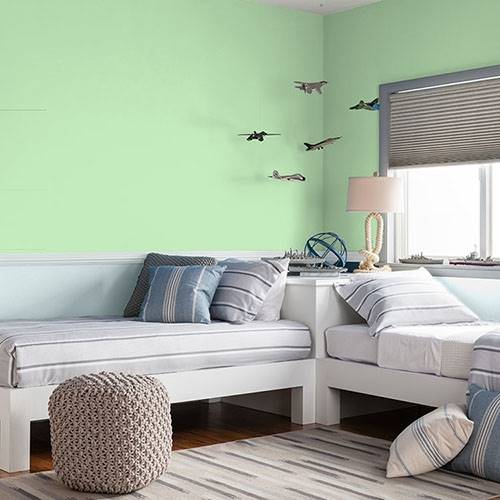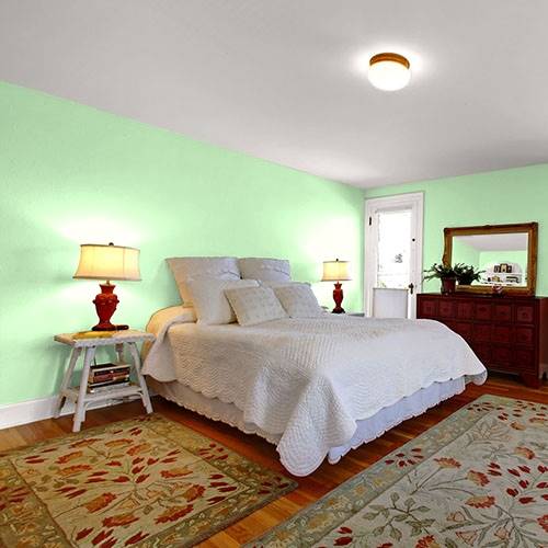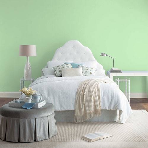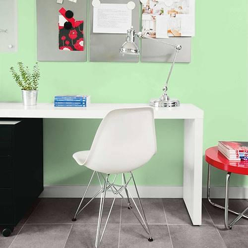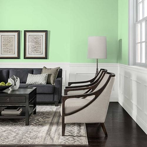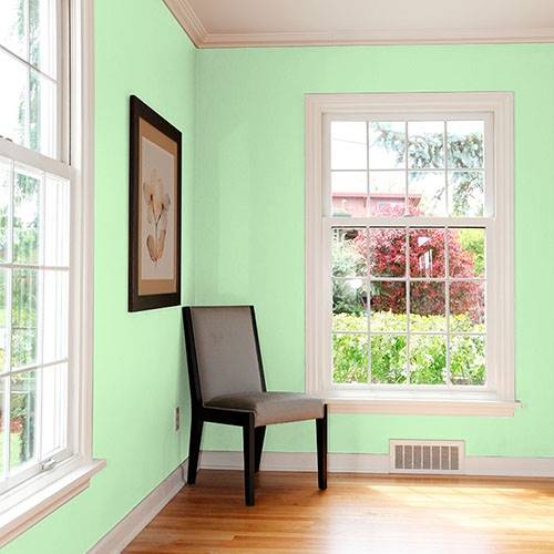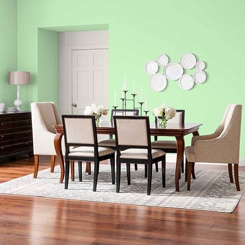 This pastel spunky green is a perfect selection for lively kitchen. Pair white cabinetry and floral print artwork for a punch of contrast.