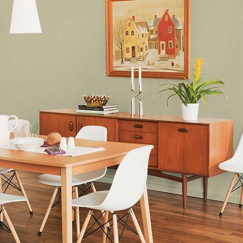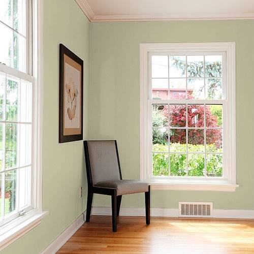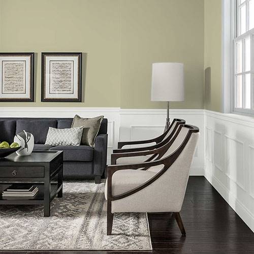 This lovely soft olive can be used on all four walls. Use a lighter shade on the remaining walls for a soothing ambiance.