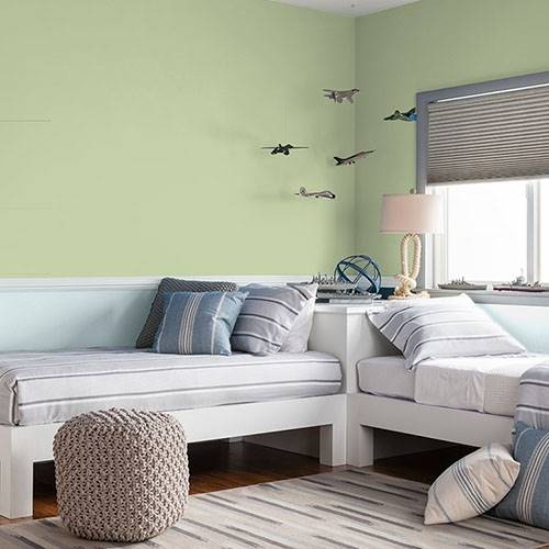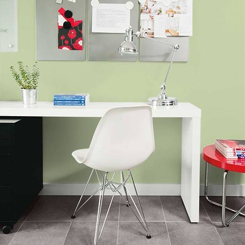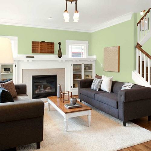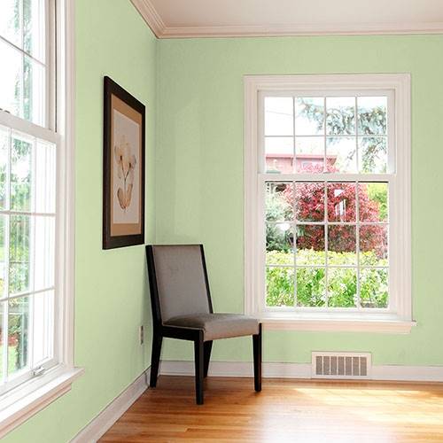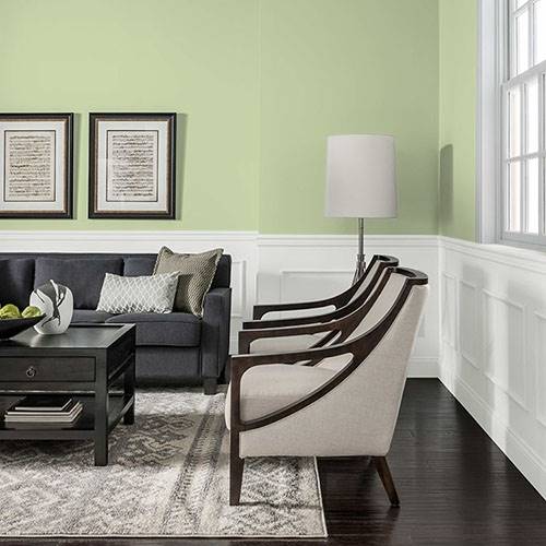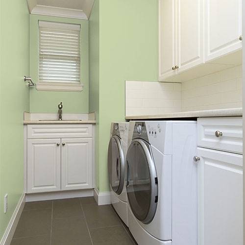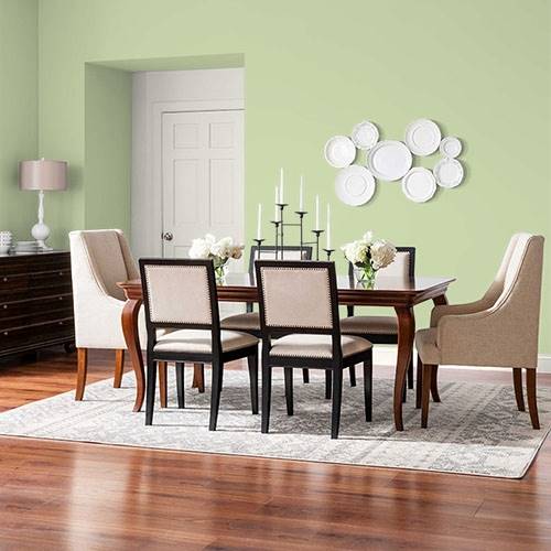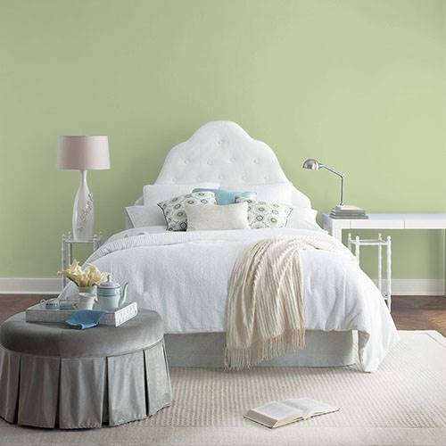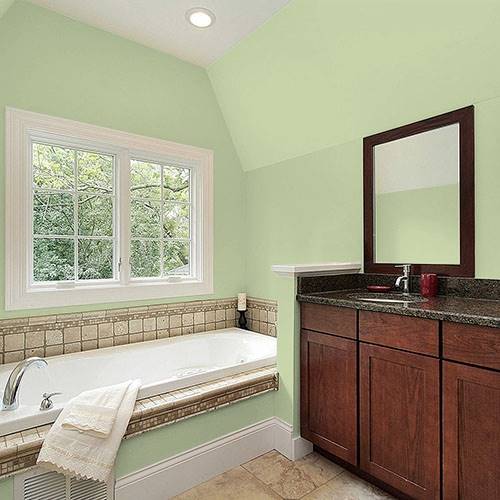This fizzy lively green creates a pleasing atmosphere for the bathroom. Use of natural wood accents add a splendid appeal in this area.