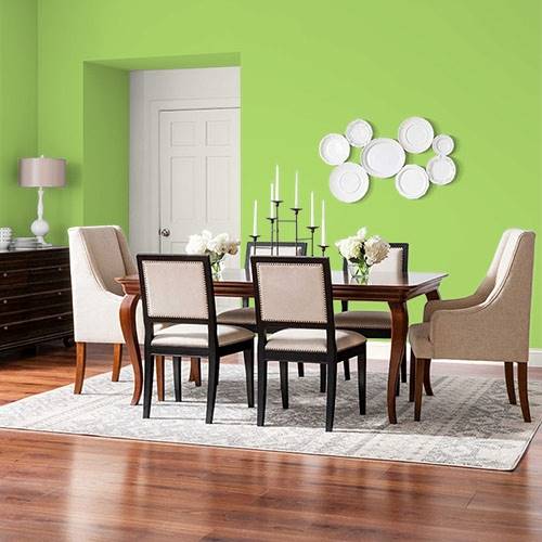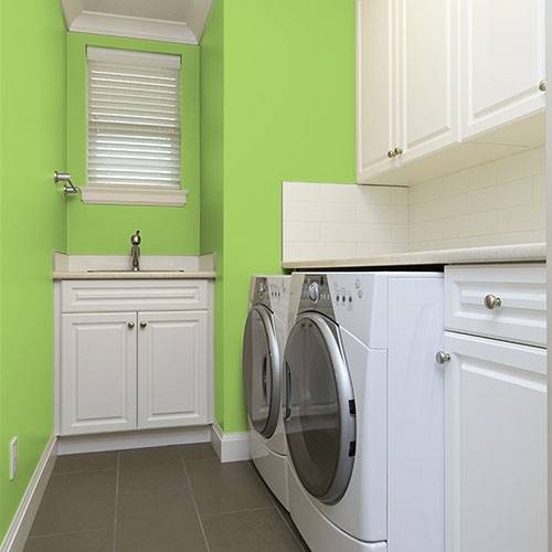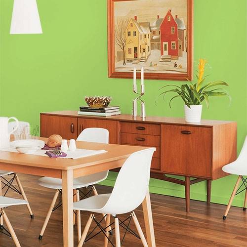 This saturated green ignites enthusiasm into a children's playroom. Coordinate pops of oranges and yellows into this space as accents.