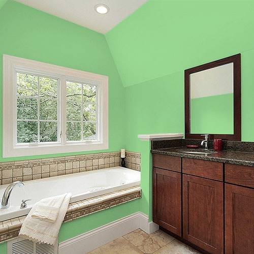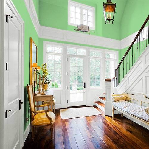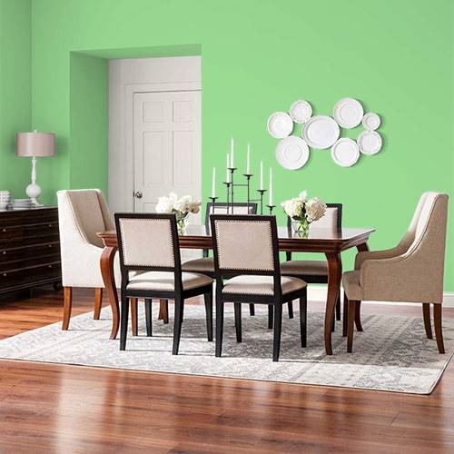 This zesty green will liven up any accent wall. Pair with lighter green tones for the surrounding walls.