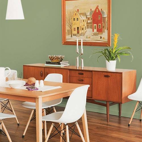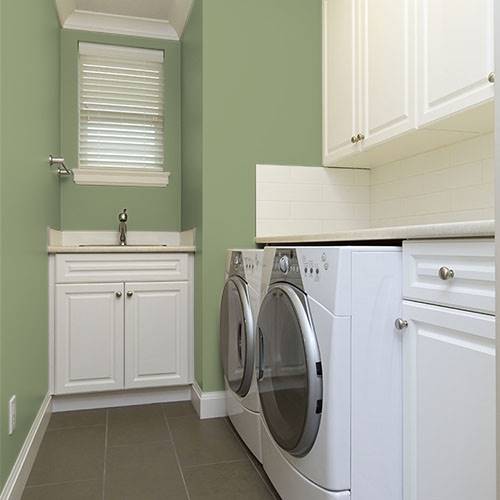 This clean green adds a punch of brightness to the kitchen area. Add a contemporary flair by using it with white cabinetry and white accents.