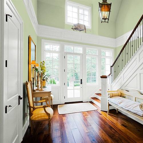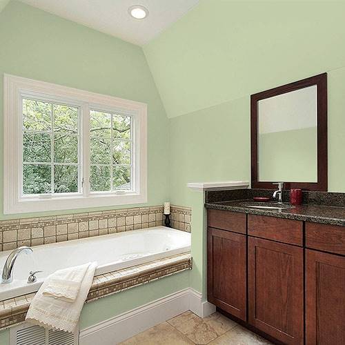 Add freshness to a kitchen area by using this fresh green sage. Popular marble countertops updates this space with pops of grays and whites.