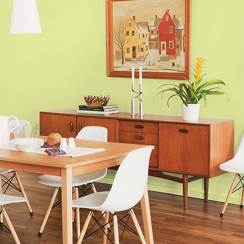 This sizzling light spring green is a fun loving selection for a bedroom. Add pops of white décor and accents into this space.