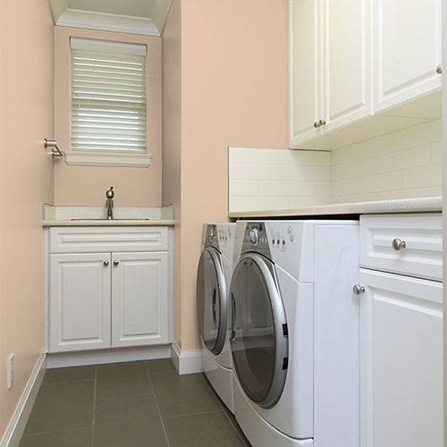 A calming tan that creates a comforting environment. Lighter trim colors will pop this color in your friendly space.
