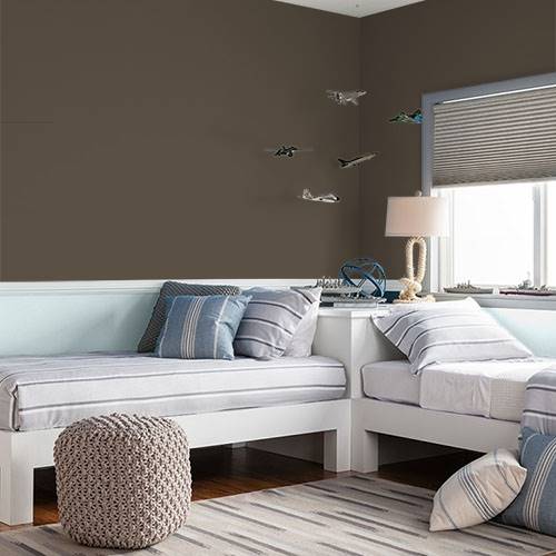 This deep brown can be used as an accent wall in your home. Lighter neutrals pair nicely on the adjoining wall areas.