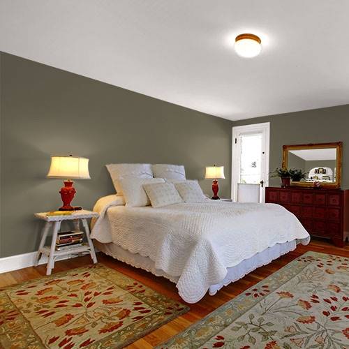 This bronzed green is a perfect exterior front door selection. Pair lighter exterior body color in shades of tan or sage for contrast.