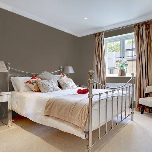 A grounding deep brown is perfect for an exterior accent on railings or garage doors. Natural woods and brick textures are excellent surrounding choices.