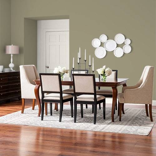 This subdued olive is an elegant color for all walls. Coordinate with camel tan accents and plum accessories.