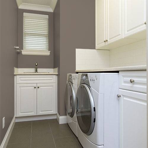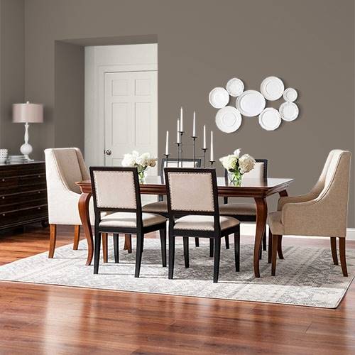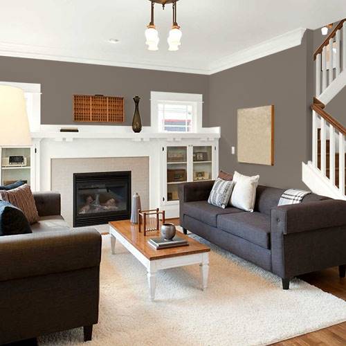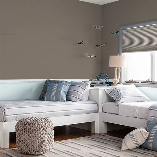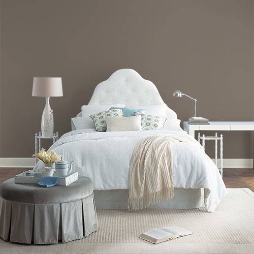 A soft midtoned brown establishes a snuggly essence for a bedroom. Light creams are wonderful accents for this dreamy color.