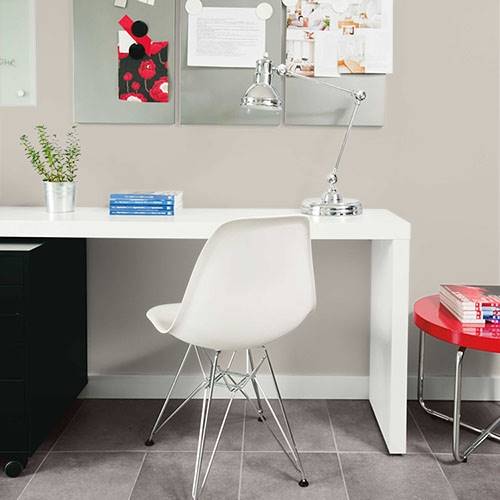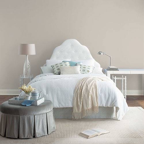 This is a perfect gray neutral behind a fireplace wall. A white molded mantle sets this color exquisitely.