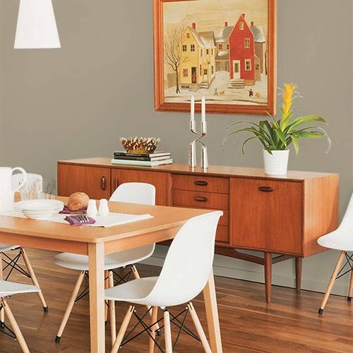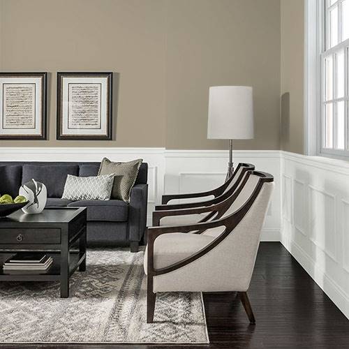 Apply this soothing gold on a kitchen island for a contrasting look. Use white cabinetry and other cream accents.