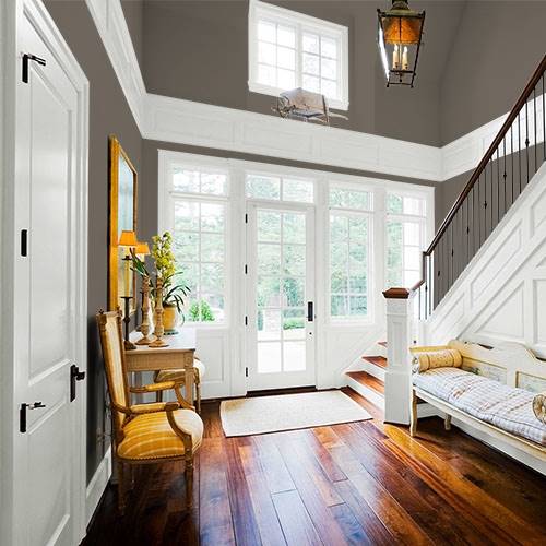 For a comforting living room, add this color as a feature wall. Use a lighter shade for a trim color.