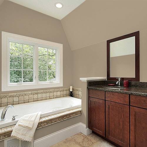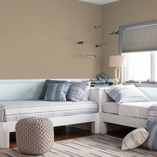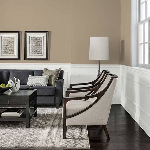 This gentle neutral creates well on all interior walls. Comforting and cozy this color blends nicely with pops of creams and rustic corals.