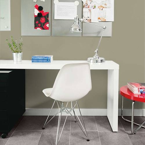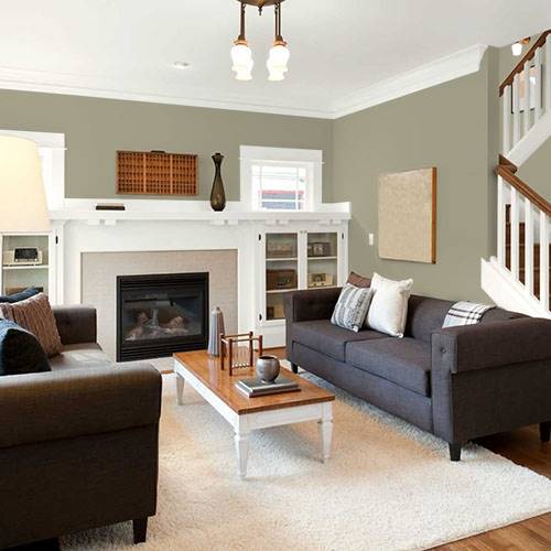 A nature inspired olive is perfect for a background behind a river rock fireplace. Surrounding walls can be lighter shades of sage.