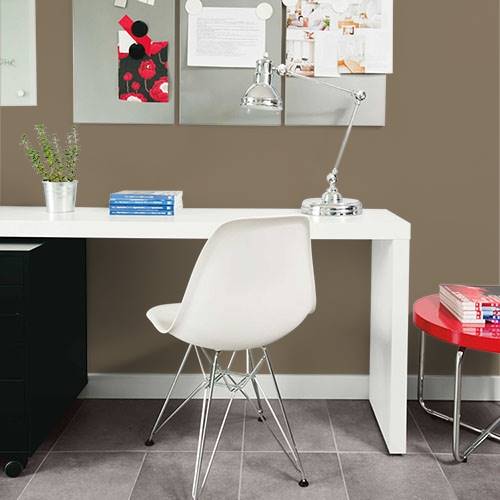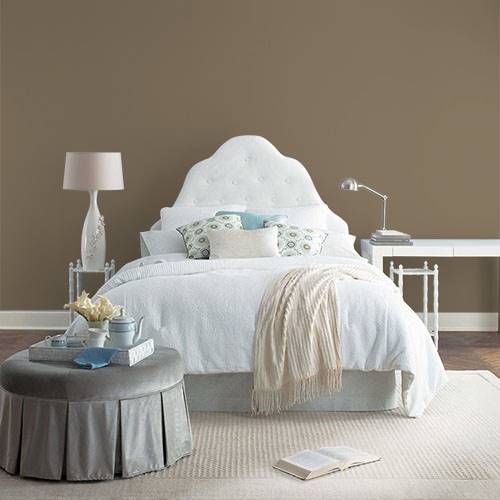 A moderate soft brown is a wonderful choice for an accent wall. Subtle corals complement this soulful tan in a unique harmonious way.