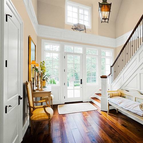 This graceful lush neutral emanates a beautiful bedroom area. Select hazy blues and dusky greens to add a touch of beautiful nature into this area.