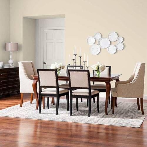 Try applying this beautiful sandy tone for all walls in an interior. Pairs well with coastal blues, soft corals and shades of sage.