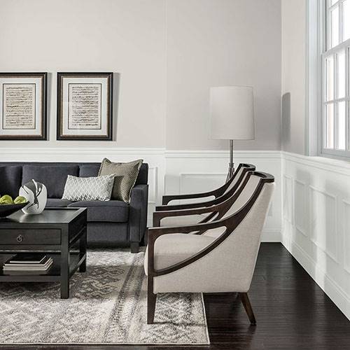 This lovely neutral can comfort a living room area. Trim in white and coordinate deeper tones for contrast as well as pops of plum or purples.