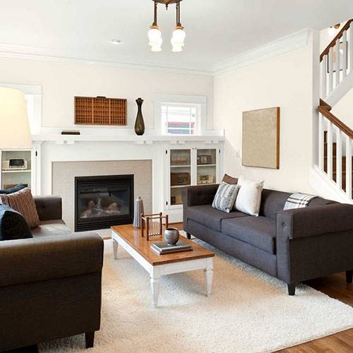 This creamy off-white is an elegant hue for an interior. It may be applied to a trim on wood moulding.