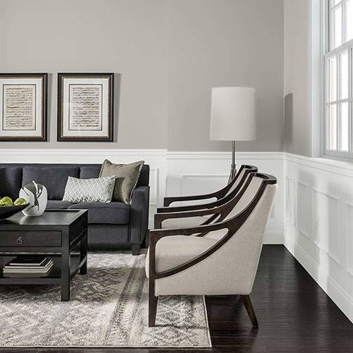 This beautiful griege is an excellent wall color for all main walls. Lightened surrounding walls for contrast with lighter greige inspired colors.