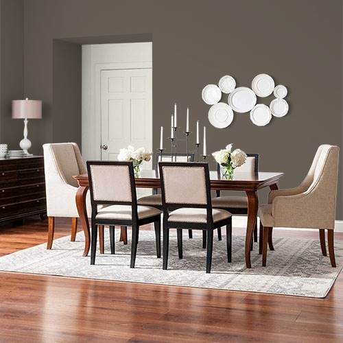 This complex brown is a brilliant selection for an accent wall. Pair with rusts and lighter neutrals as companions on surrounding walls.