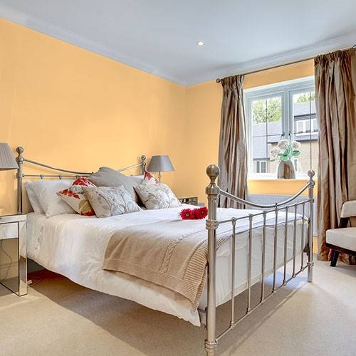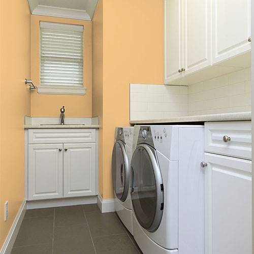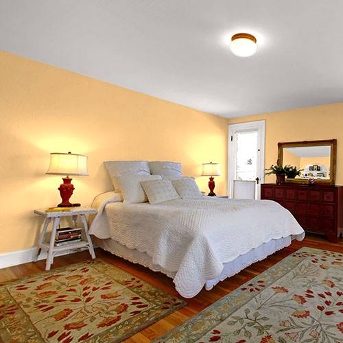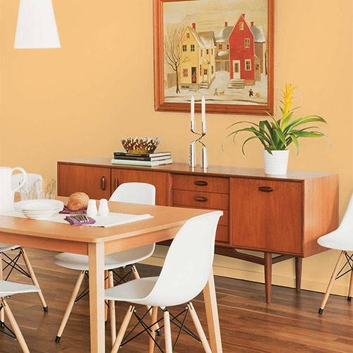 This energetic gold is an exercise room filled with liveliness. Pair with fun coral and pops of plum for that eye-popping accents.