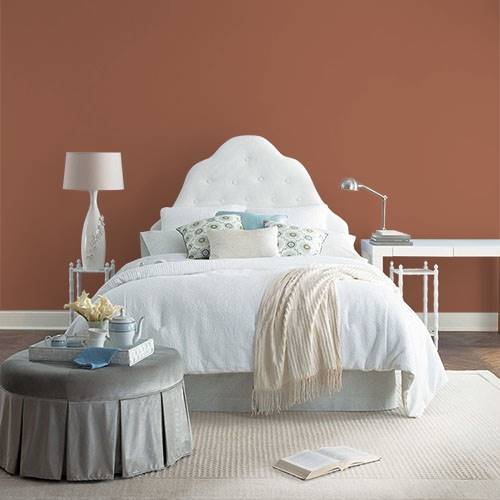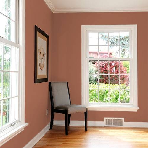 A terra cotta inspired color is an inviting front door color. Use lighter cream tones as trim surrounding the door and pairs with the exterior body color.