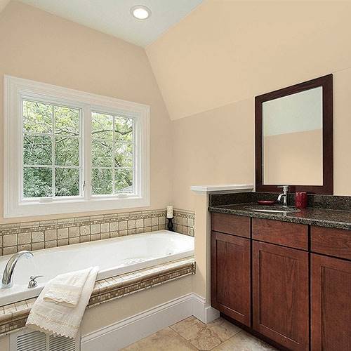 Speaking of tradition, this subtle gold reveals a mild appearance to a living room. Relaxed in nature, this neutral looks best with white trim.