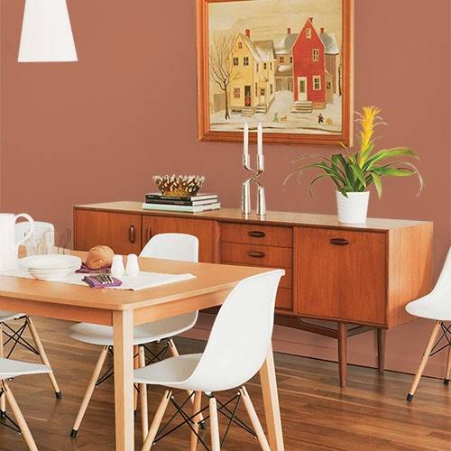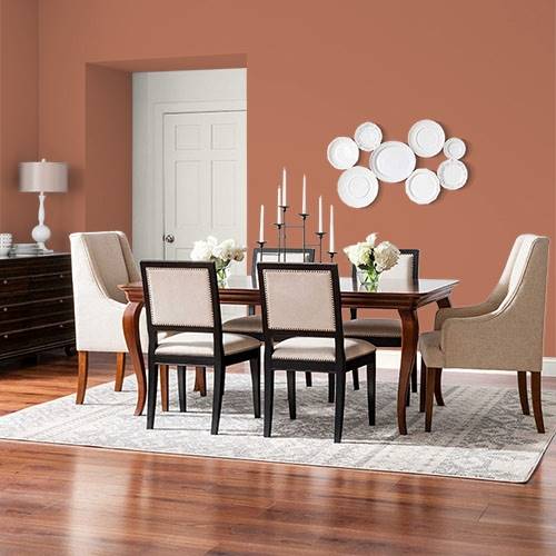 For an Italian inspired room, use this Tuscan clay color for an accent wall. Coordinate sage greens and pale yellows walls for contrast