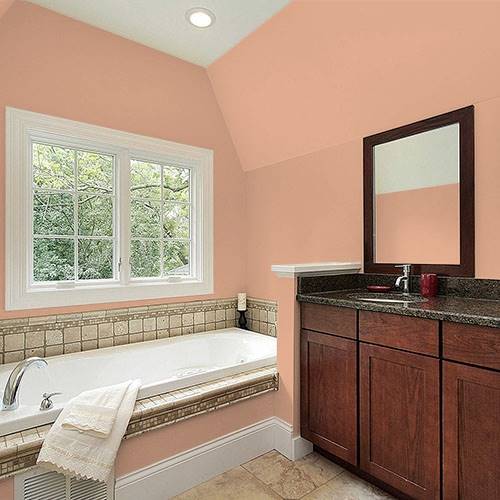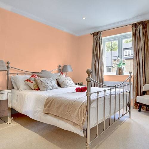 This melon inspired color is perfect for a main wall color. Contrast this space by using darker chocolate browns.